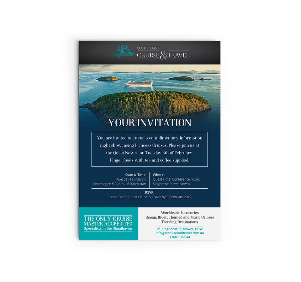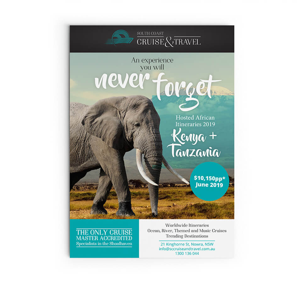 The experience that South Coast Cruise and Travel brings to the travel industry in Nowra is next to none and they required a brand that personified this. Working with Lindy, Brianna, Amanda and Prue has been an absolute pleasure and we couldn’t be more pleased with the experiences that it has presented us in all aspects of design and advertisement.